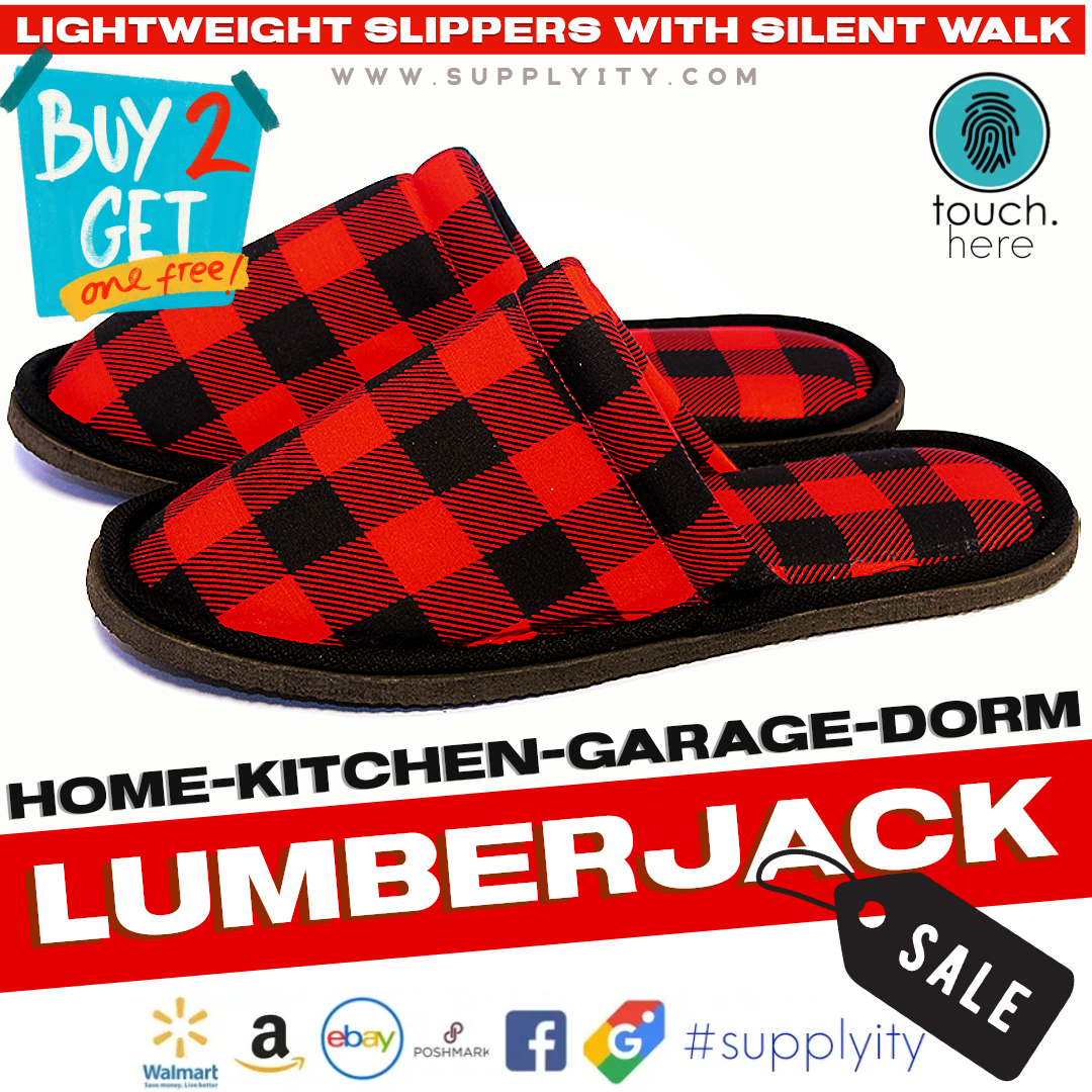 Chochili Erkek Oduncu Ev Terliği Siyah ve Kırmızı Hafif Sessiz Yürüyüş Boyu 8 - 10